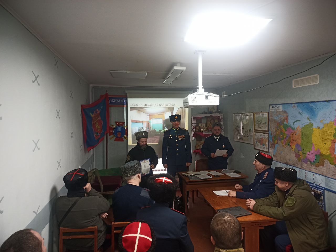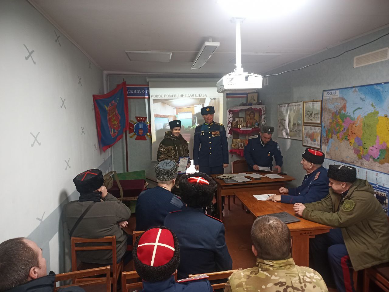 В штабе коломенских казаков прошел отчетно-выборный круг за 2025 г. Подведены итоги работы правления и общества. По итогам прошедшего периода отмечены благодарностями лучшие казаки-дружинники Кузьминов К.А., Зайцев А.В., Муромская Д.М. Поздравляем новых членов казачьего общества Шевлягина В.С. и Пронькина М.А.